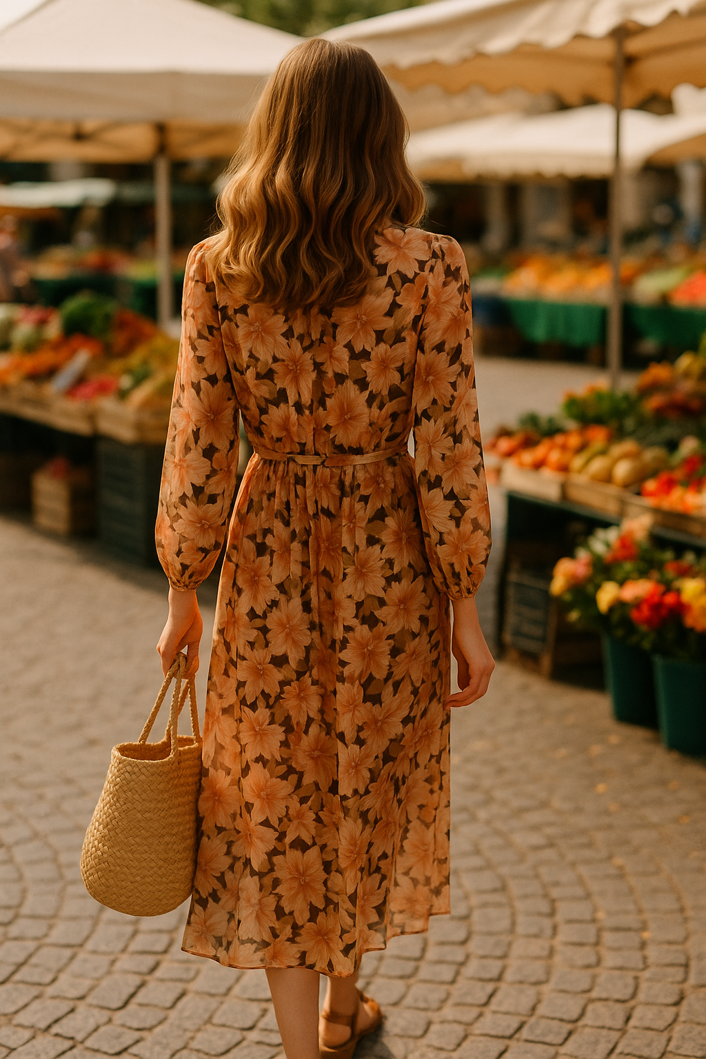 Ses teintes chaleureuses — nuances d’orange, de beige et de brun — s’harmonisent avec tous les teints et invitent au voyage.